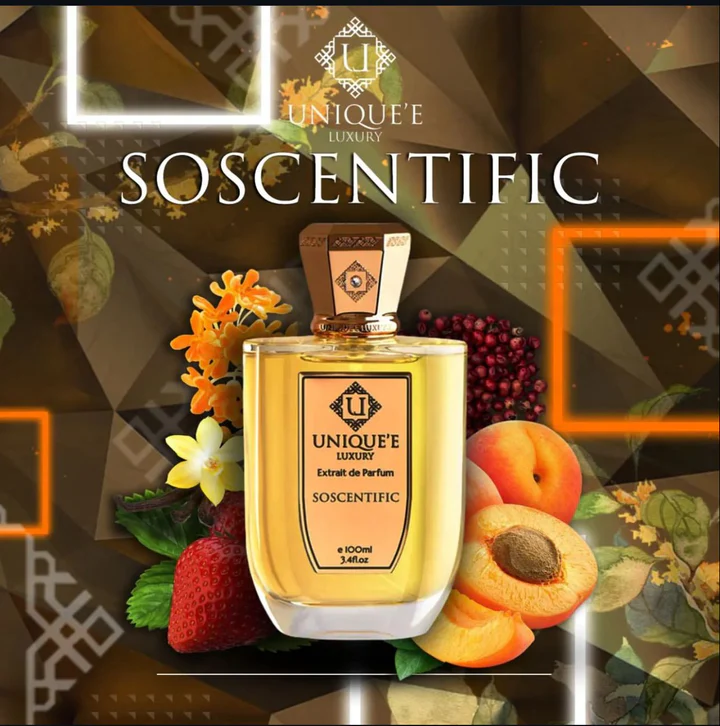 SoScentific by Unique’e Luxury is a Floral Fruity fragrance for women and men. SoScentific was launched in 2019. The nose behind this fragrance is Selim ร–zen. Top notes are Osmanthus, Orange Blossom and Grapefruit; middle notes are Peach, Strawberry, Plum, Pink Pepper, Cherry and Jasmine; base notes are Vanilla, Amber, Cedar and Musk.